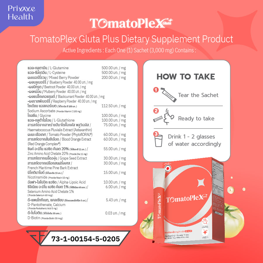 Tomato Plex Gluta Plus (Dietary Supplement Product) บรรจุ 14 ซอง/กล่อง
